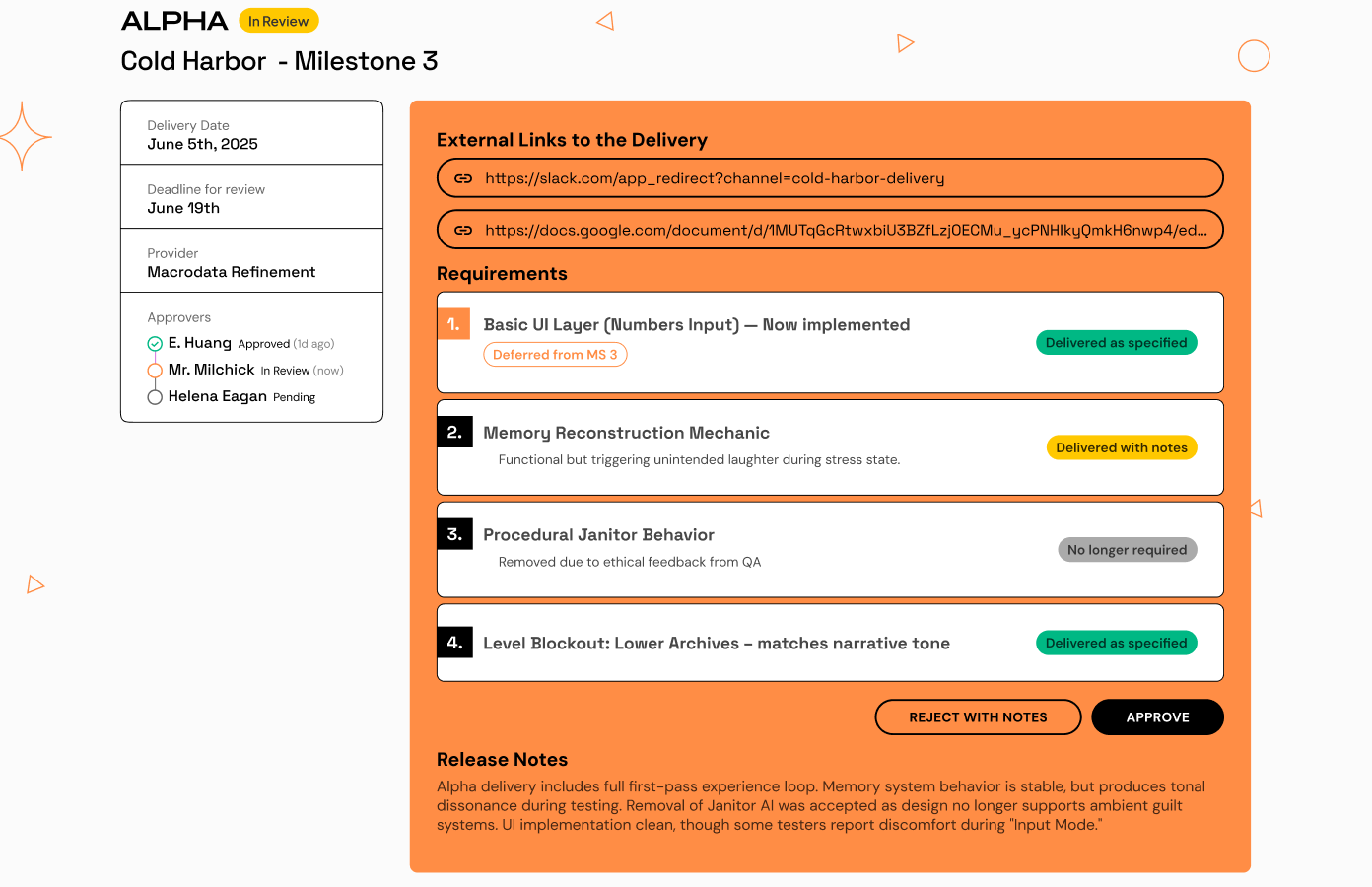 Our CLM is a system that helps ensure game development partnerships stay aligned, compliant, and on track. It went through R&D for most of the year as an internal tool, but thanks to the speed and clarity it brought our team, we rolled it out to all CDR clients and providers as well.